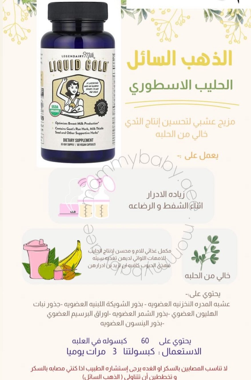 Liquid Gold® مصمم لدعم إنتاج الحليب الطبيعي بمكونات كانت تُستخدم تقليديًا بين النساء المرضعات في جميع أنحاء العالم.